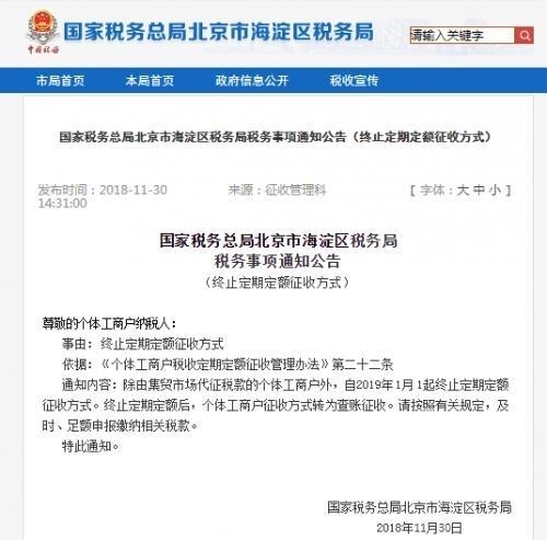 注意了,个体户也要查账征收!2019年1月1日起终止定期定额 |