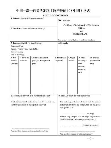 【关税征管】新版中国-瑞士自贸协定原产地证书填制指南 |