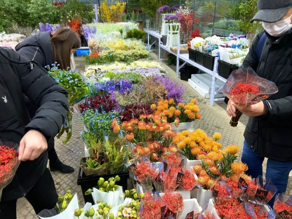 0 V: d9 n* o' M3 c( F& O5 V4 o花卉市场顾客络绎不绝,人们在喜爱的花前或驻足观赏,或问价选购。下一站,这些漂洋过海而来的花儿将迎来自己的新主人,绽放在更多国内消费者面前,陪伴人们度过一个祥和欢乐的春节。