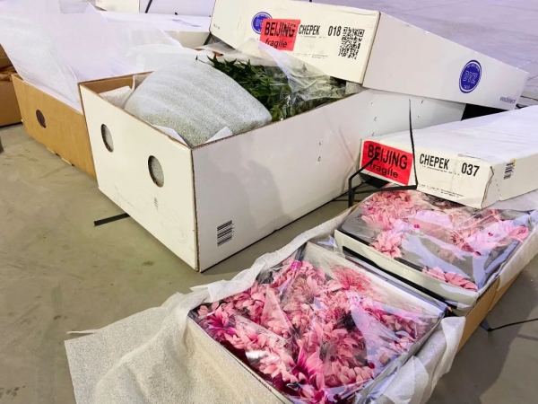 为了使进口鲜切花尽快上市,首都机场海关提供“7×24”小时报关服务,开通夜间、周末时段应急办理接单审核业务窗口,优先安排鲜活货物查验,做到随到随查、及时验放,确保进口鲜切花以最高品质进入国内市场,为千千万万家庭欢度春节带来一抹亮色。& k) i% m0 S+ `) D% S