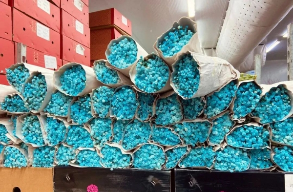 经过悉心打理和包装,这些花绽放正盛,香气袭人。“我们店内目前有近300种大类进口鲜切花,从原产地发货到送达消费者手里大约一周时间。”王磊说。