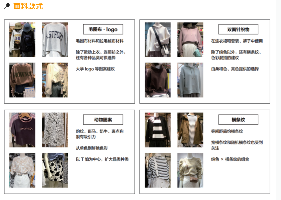 亚马逊日本站女装卖家小B: 看了之后才知道原来日本今年秋冬要流行条纹,简直就是开款神器! 亚马逊日本站女装卖家小C: 通过TREND JP我们了解到了日本最新的流行趋势以及流行元素。我们下半年秋冬新款正在设计中,因此我们会参考这个报告里面的一些流行元素来进行选款。我们会发现有一些凭自己认知,以为会在日本卖得好的款式和设计,在参考了TREND JP之后发现其实现在已经并不流行了。 亚马逊日本站女士包包卖家小D: TREND JP报告内容非常很详实!我们是做箱包类的,通过这份报告了解到了,不同材质以及款式的包包,在不同年龄层消费者的受欢迎程度及产品阶段,帮助我们在制定产品策略时又多了一个依据。 四大亮点 助您把握时尚新商机,销量翻番 超200页2022秋冬时尚趋势报告,涵盖11个超人气女装品类;包含外套、连衣裙、针织衫、上衣、女式衬衫、短裤、短裙、运动服、鞋靴、珠宝、箱包。 ● ● ● ● ● ● ● 每个品类涵盖10个+维度分析,包括产品周期、消费者年龄段、品类表现、线下销售情况、颜色、流行穿搭、款式、设计细节、材质面料、花纹图案等。 ● ● ● ● ● ● ● 精准洞察线上线下日本女装品类消费需求,预测下一季流行热卖元素。 ● ● ● ● ● ● ● 双语版本自由切换,中文帮助您理解潮流趋势,日文则帮您更好地优化 Listing 和广告。 以女士休闲上装为例 查看多维度的详细分析 趋势在变但生意核心不变,建议卖家提早了解流行趋势抢先一步完成备货,迎接秋冬销售小高潮!