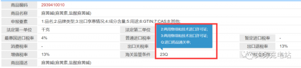 以上54种货物属于《目录》内易制毒化学品部分。其中所列的海关商品编码,不论用网上的一些查询网站或者书本,都会提示海关监管条件2、3(2:两用物项和技术进口许可证;3:两用物项和技术出口许可证)。这部分的商品一般不会出现未提交许可证而被处罚的情况。毕竟报关企业录单系统也会提示,收发货人不清楚或者忘记,报关企业也能及时提醒收发货人去办理。