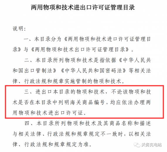 答:《目录》第一页的说明第三点(如下图)。这句话翻译一下就是:列明的海关商品编码是给你参考的,只要涉及《目录》内商品名称的,不论是不是《目录》内的商品编码都要办理许可证。只看成分不看商品编码。5 c& G# E3 D8 y' S