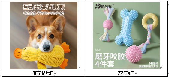 第三,“宠物玩具”一般不归入品目95.03,因为第九十五章总注释中已经明确了是供儿童或供成人娱乐用, 而宠物玩具不在此列,所以通常按材质归类。但是,宠物玩具必须有相应指征进行判断,如形状特征(鹦鹉用的玩具自行车)或质量标准(不符合GB6675-2003),对于某些儿童玩具给宠物玩儿的,则还应按设计初衷的玩具归类。所以宠物玩具也不能无原则的按材质归类,必须确认指征以免规避玩具的法检要求而产生风险。9 L8 j3 k) U2 T4 H