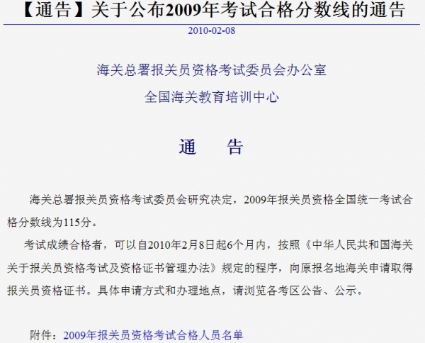 09年报关员考试分数线已公布。115!!!(为什么删我贴子?) |