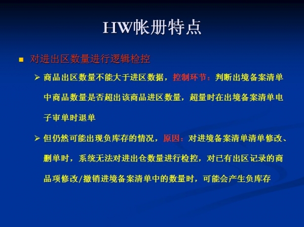 为使海关对特殊监管区域内物流企业管理工作规范统一,促进区内保税物流业务的健康发展,结合海关监管实际,由总署特殊区域物流账册工程组开发了《电子帐册特殊监管区域物流账册》。本系统包括前期管理、中期管理、风险预警管理。 特殊区域内物流企业指经海关批准设立在海关特殊区域内从事保税物流业务的企业。海关对区内物流企业及其进出库货物实行电子帐册管理。物流账册是区内物流企业开展仓储业务前必须向主管海关申请建立的电子底帐,是企业向海关申报进出区货物的电子凭证,是海关为控制和记录企业申报进出及存仓货物所建立的电子数据帐册。 特殊区域物流帐册系统是在海关总署加工贸易及保税监管司、科技发展司、H2000工程组、电子口岸共同努力下,在原H2000保税仓库记账式电子帐册系统兼容的基础上,为适应全国特殊监管区域内保税物流业务的发展状况,经过多方努力编写而成的。 H2000特殊区域物流账册的特点是业务上更接近海关操作实际,管理更为严谨。 为便于海关系统广大业务人员了解和掌握《电子帐册特殊监管区域物流账册》的主要内容,我们编写了本手册。本手册主要包含了以下部分:前期管理(物流帐册备案、变更、查询),中期管理、风险预警管理等内容。